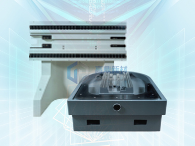 礦物鑄件又稱“人造大理石”“樹脂混凝土”,是用天然石碎料/鵝卵石、黃砂等為骨料,改性環(huán)氧樹脂等為膠凝材料,加入部分填料和外加劑經過混合攪拌、振動密實而形成的一種新型高分子復合材料。其具有的復雜外型的成型能力和整合能力,高精度,良好的吸震性、熱穩(wěn)定性及耐腐蝕性等優(yōu)勢。